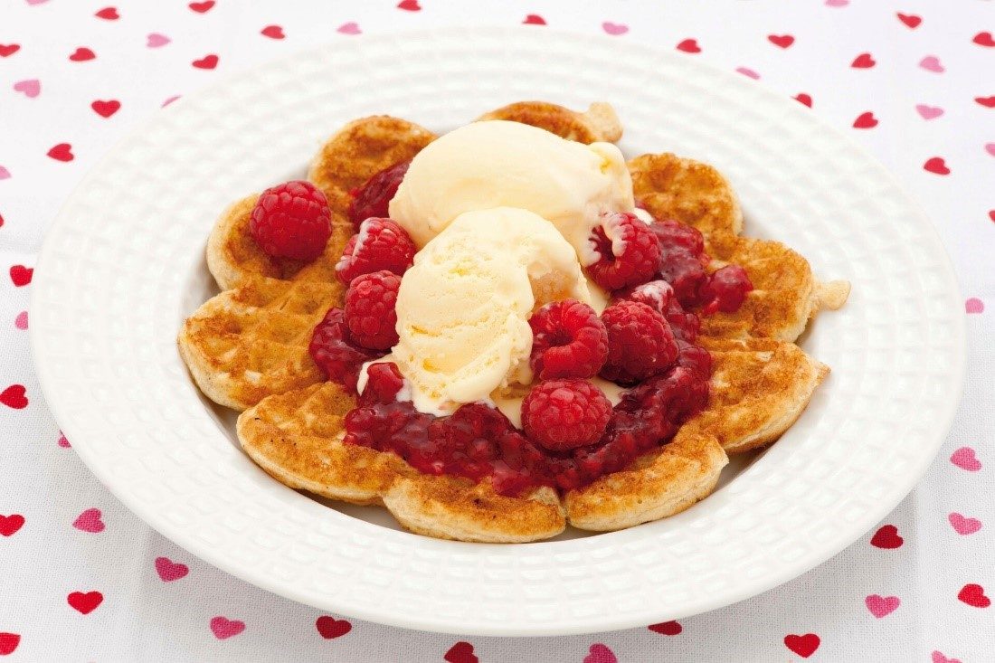 – Eplevafler med bringebær og vaniljeis smaker herlig, smiler Toril Gulbrandsen og anbefaler den gjerne som dessert eller når du er fysen på noe godt!