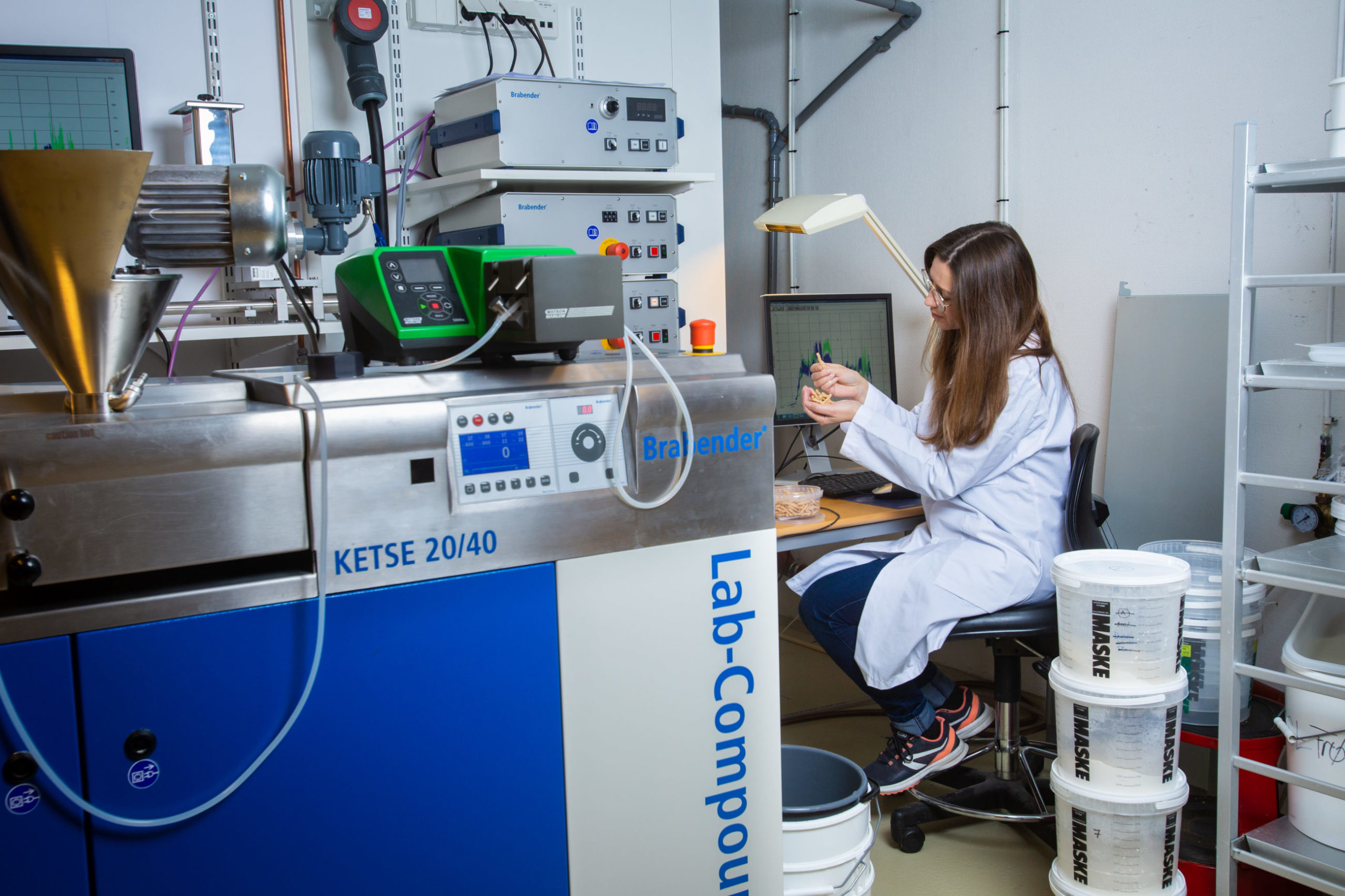 Bildetekst: Ekstruderen kan brukes til både tørr- og våtekstrudering. Forsker Catia Saldanha do Carmo har kartlagt effekter ved begge teknologiene. Foto/cc: Joe Urrutia/Nofima