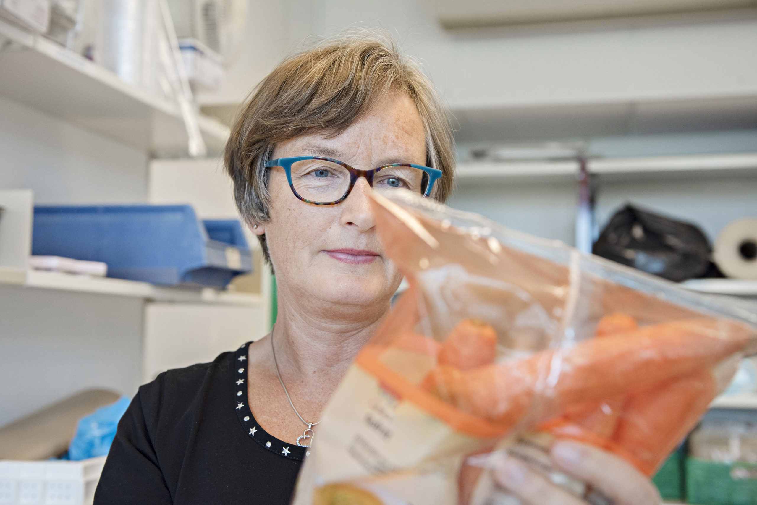 Bildetekst: Hanne Larsen har forsket på hva som skal til for å minske svinnet på gulrot, både i distribusjon og hos forbruker, ved å se på hvordan emballasjen puster og betydningen av lagringstemperatur.
