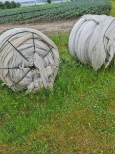 frem til rundt 17. mai. Da ruller han opp plasten med en maskin på frontlesseren, og generelt er det lite jord som følger med. Det som kan øke vekten på plasten er at det gjerne følger med en del vann. Den brukte plasten blir levert den korte veien direkte til Rødsrud Plastmottak AS på Rygge.