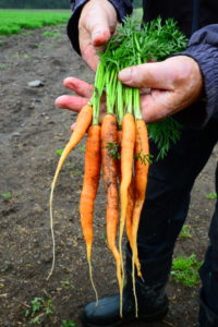 Gulrota blir sådd ut rundt 1. april. Omtrent 2/3 av arealet blir lagt under plast uten bøyle