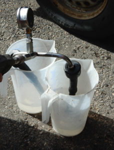 Måling av dysekapasitet. Foto: Magne Berland m funksjonstesting av åkersprøyte har vært gjeldende i en årrekke. Disse sprøytene skal funksjonstestes hvert 5. år (hvert 3. år fra 2020).