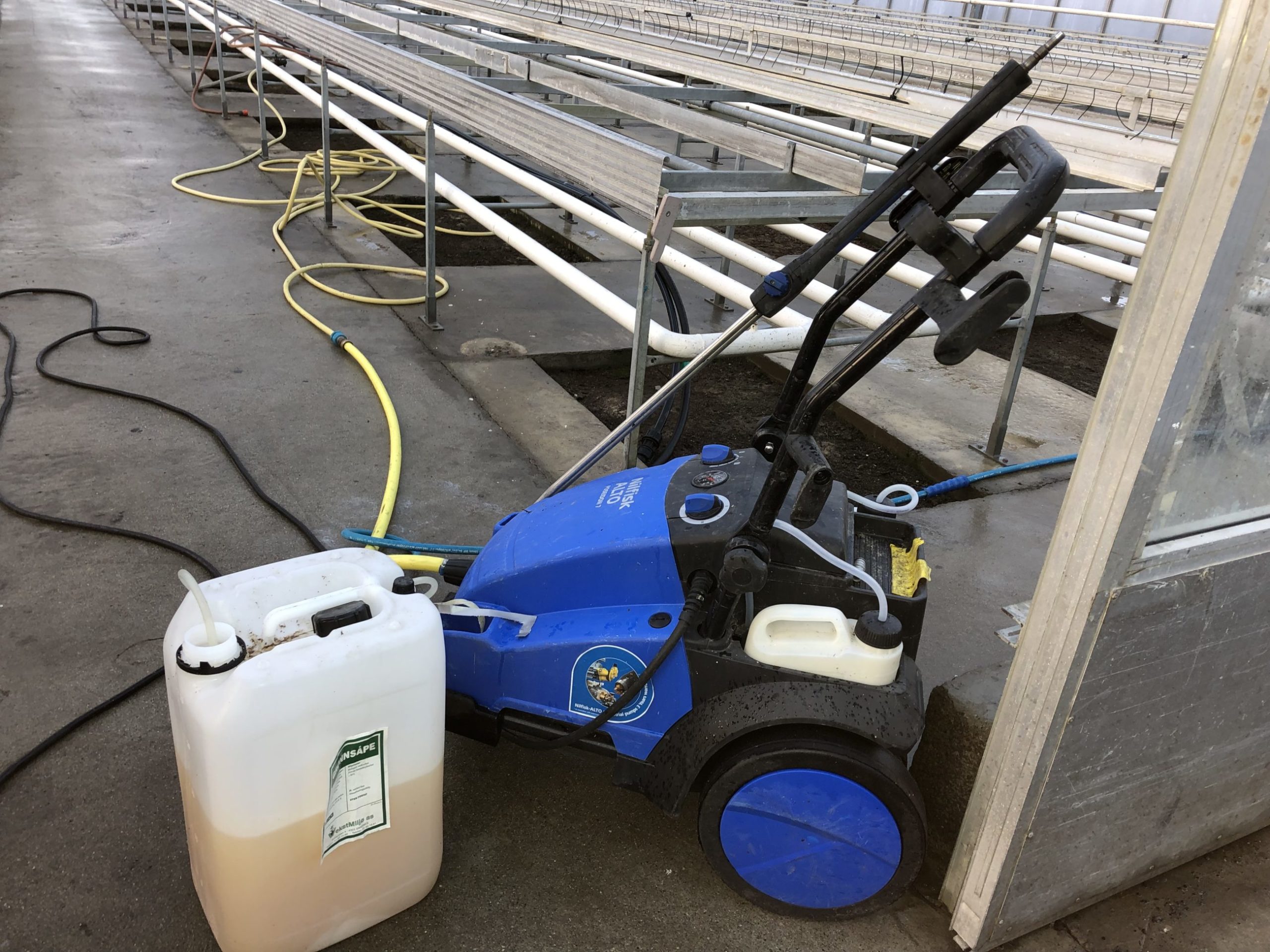 For eksempel desinfisering av fottøy: Legg matter med desinfeksjonsmiddel foran alle døråpningene slik at alle sko automatisk bli desinfisert når folk går inn og ut av veksthusene.