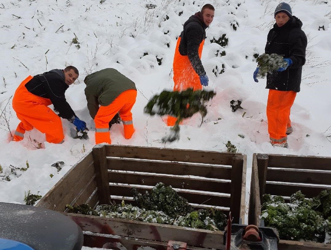 Grønnkål (Brassica oleracea sabellica) begeistrer både kokker og ernæringseksperter. Den litt eksotiske grønnsaken er smekkfull av næringsstoffer og du skal lete lenge etter noe som er mer sunt å spise. Bildet er tatt under innhøsting 24. januar på Frosta i Trøndelag.