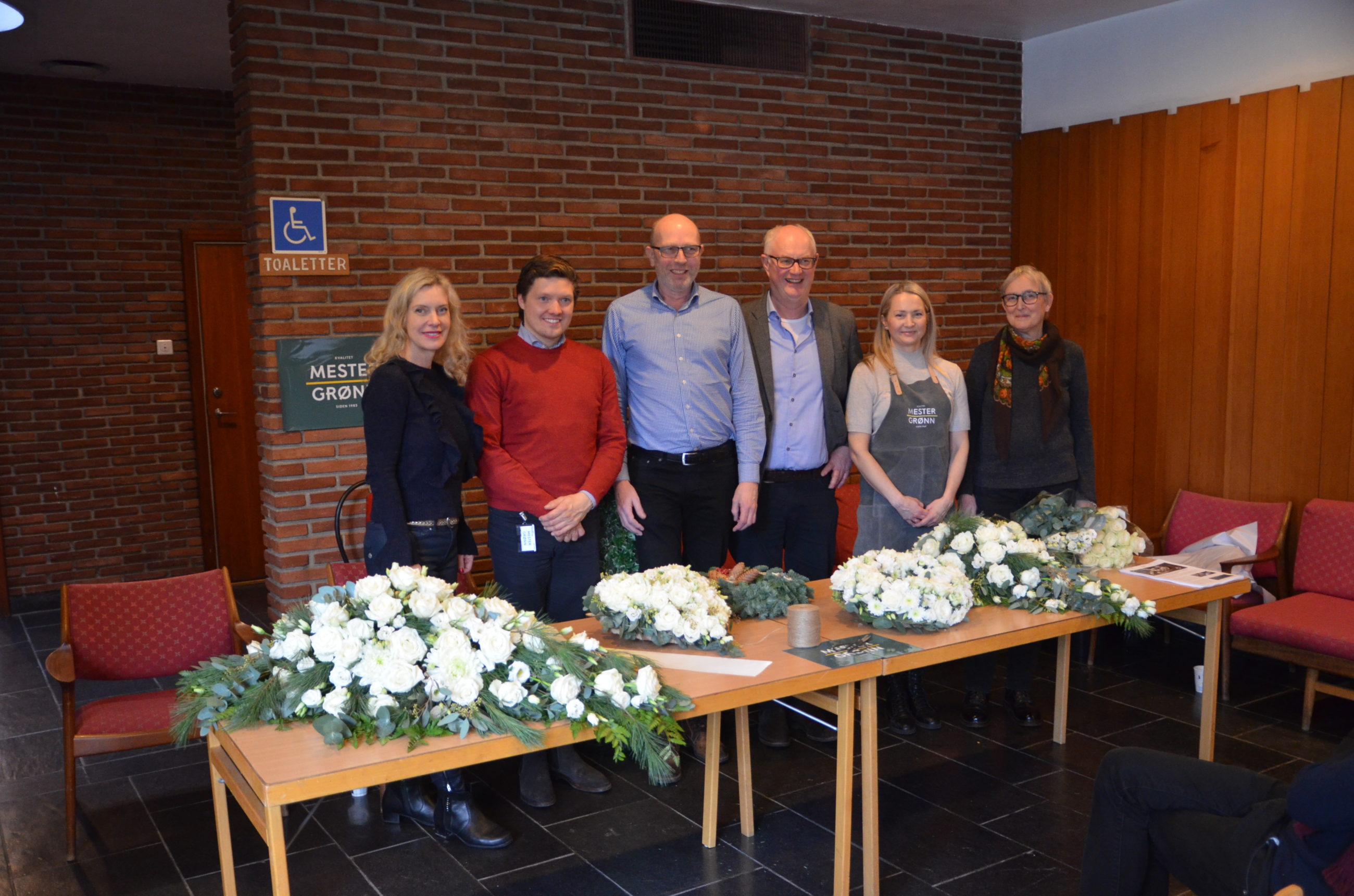 Bildetekst: Representanter for Miljøfyrtårn, Gravferdsetaten og Mester Grønn er godt fornøyde med samarbeidet som har gitt fullt nedbrytbare kranser, bårebuketter og annet sorgbinderi.