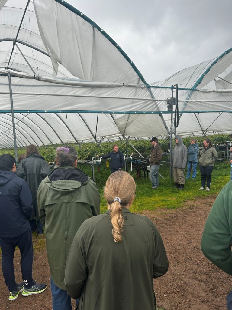 Første stopp var hos Anne Nærstad på Linnes Gård, hvor de fikk innblikk i produksjon av salater og spiselige blomster. Foto: Dag Eivind Gangås Deretter gikk turen videre til Vikram Singh på Lier Planteland, som driver hagesenter delvis basert på egen produksjon – og som virkelig har mange baller i luften. Foto: Dag Eivind GangåsEt av dagens høydepunkter var besøket på det nye sykehuset i Drammen. Her har Norges største anleggsgartnerfirma, Agaia, ansvaret for grøntanleggene. Gartnerlærling Hanna Strandvold tok imot deltakerne, viste rundt og delte erfaringer om hvordan det er å være lærling i gartnerfaget. Foto: Dag Eivind GangåsDagen ble rundet av hos jordbærprodusent Even Ekeberg, den ene halvdelen av Ekeberg Myhrene. Her fikk deltakerne både omvisning i tunnelene og smake på de søte bærene. Foto: Arthur Sæmer Timraz